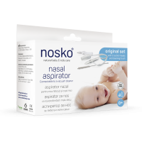 5. Introduceți corect capul de aspirație în nară. Cum să plasați aspiratorul nazal în nară și sa îl utilizați corect: țineți capul de aspirare în mâna dreaptă astfel încât furtunul de conectare (așa cum se arată pe cutia aspiratorului nazal) să fie orientat în sus. Acest lucru este important pentru a preveni deplasarea secrețiilor nazale către furtunul de conectare, astfel încât dispozitivul să ramână igienic, numai capul de aspirare și recipientul trebuie spălate, nu și tubul de conectare. Introduceți capul de aspirare în pasajul nazal extern prin montarea acestuia în nară, atât cât permite designul în formă de con. Nu împingeți prea adânc și nu forțați, deoarece acest lucru nu are un impact asupra eficienței dispozitivului. Mențineți capul de aspirare în jos și lateral astfel încât secrețiile care s-au scurs la baza nazală să poată fi îndepartate complet. Efectuați aspirația continuu timp de maximum 5 secunde. Dacă acest lucru nu este suficient, secvențele de aspirație de 5 secunde pot fi repetate de mai multe ori la rând, cu intervale de 3-5 secunde între ele, dar este recomandabil să se repete atâta timp cât în recipient apar cantități suplimentare de secreție. Durata maximă recomandată a aspirației nazale este de 2 minute.
